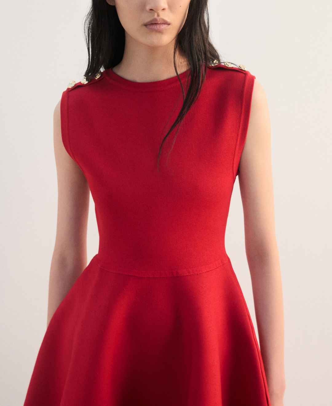 Introduce a soft statement with Peplum Knit Dress With Buttons from Mango. Made from fine-knit fabric, this short dress features peplum design, metallic shoulder detail, round neck, flared hem. With a history spanning four decades, Mango is one of Europe's leading fashion brands. From Barcelona, on ...more