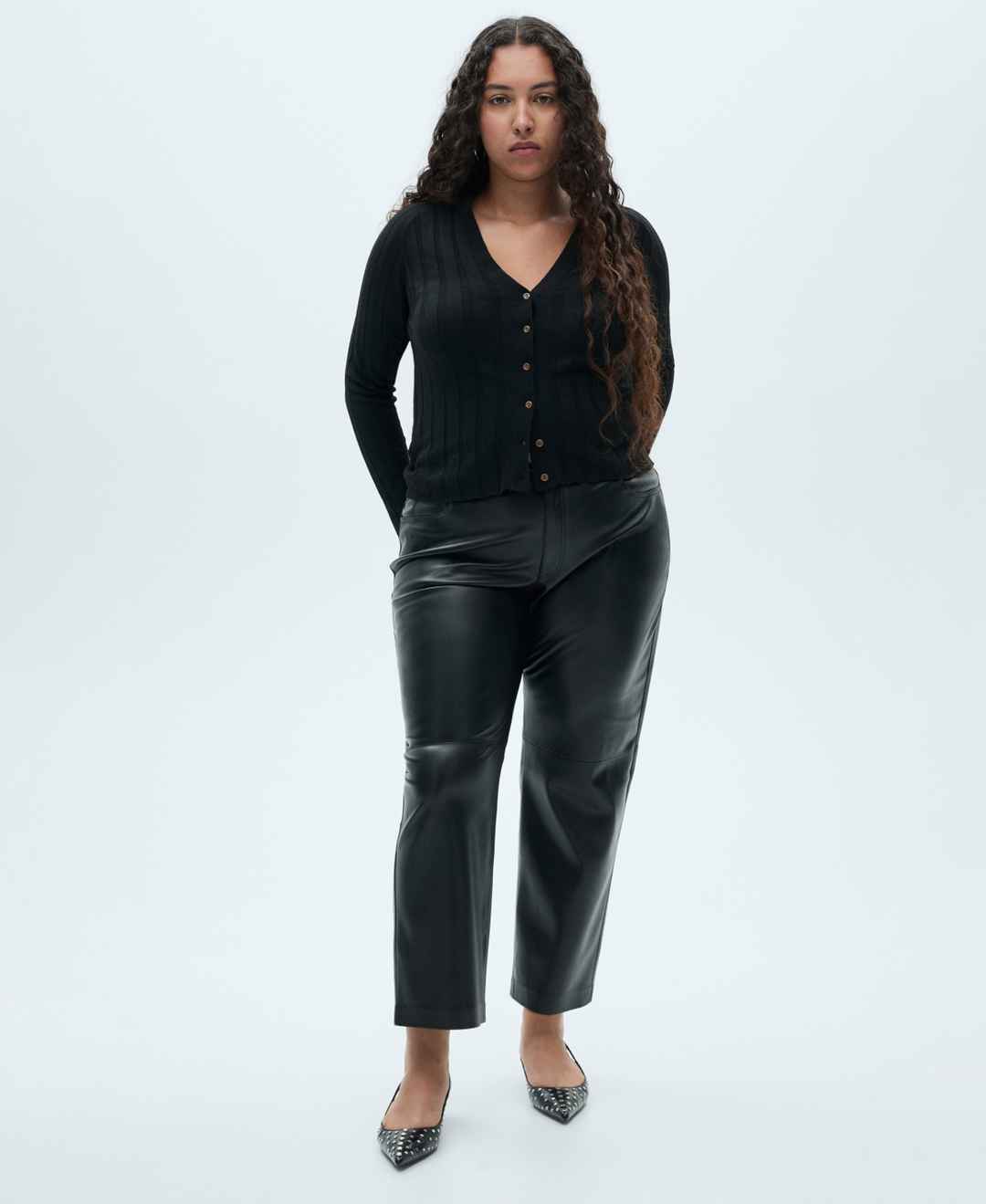 Amp your style quotient in this Leather-Effect Straight Trousers from Mango. These high waist trousers feature straight and long design, loops.