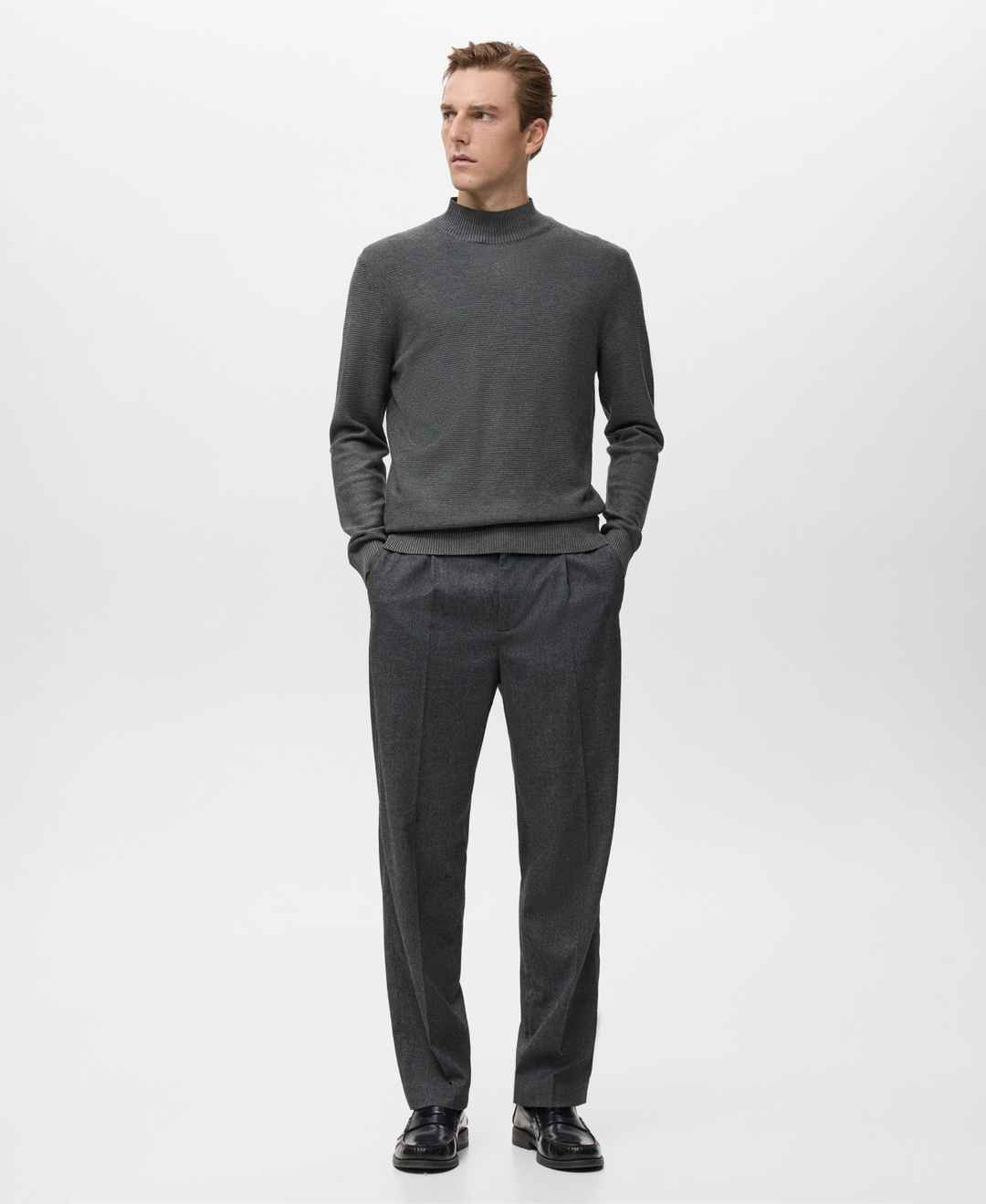 Keep it neat in the Structured Perkins-Neck Sweater from Mango. Made from structured knit fabric, this regular-fit sweater features a high collar with quadrille texture and ribbed finishes.