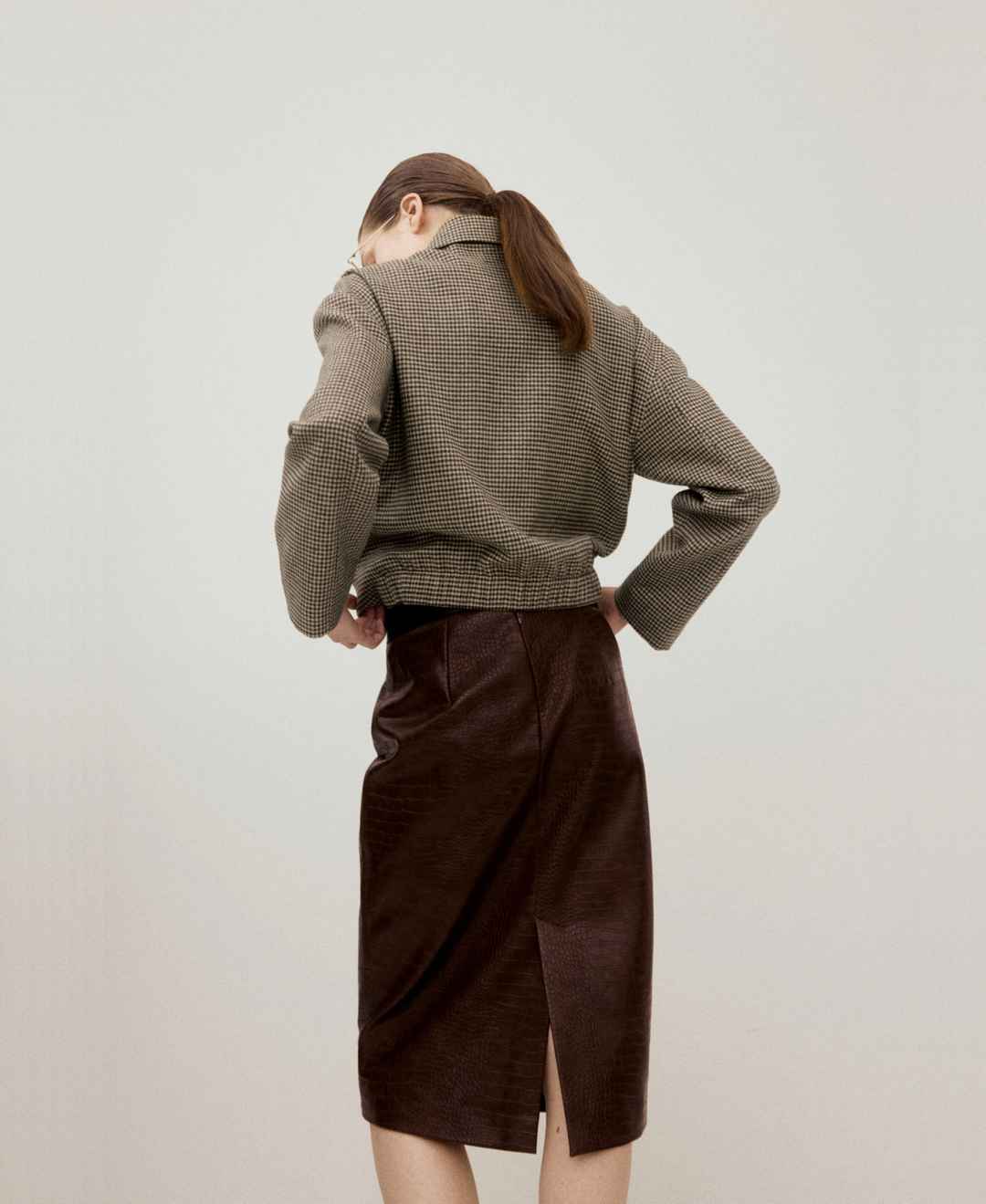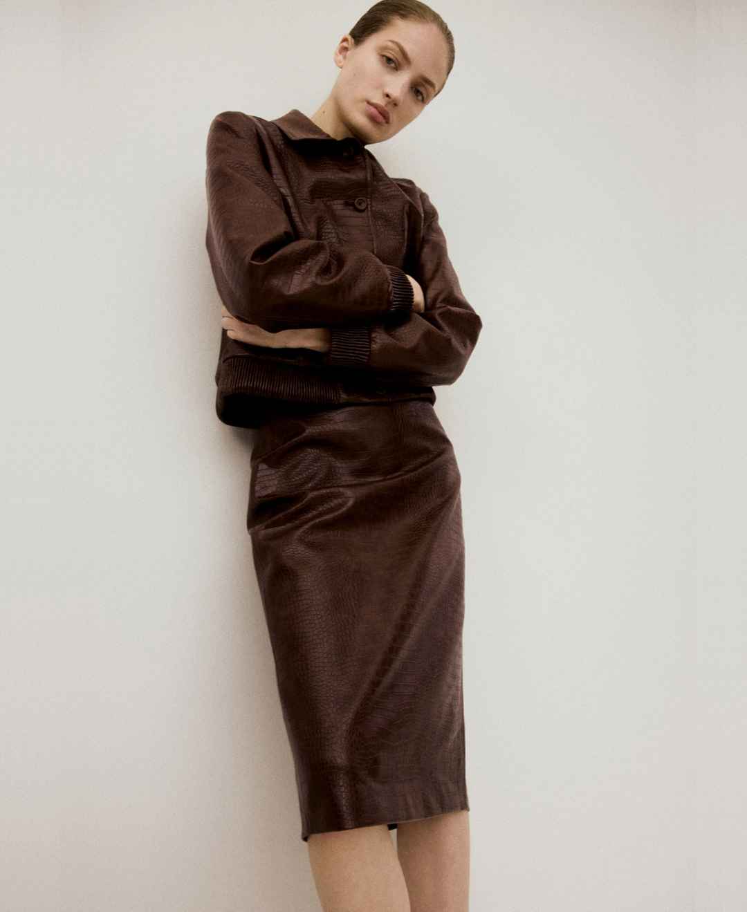 Mango Women's Croc-Effect Midi-Skirt - Brown