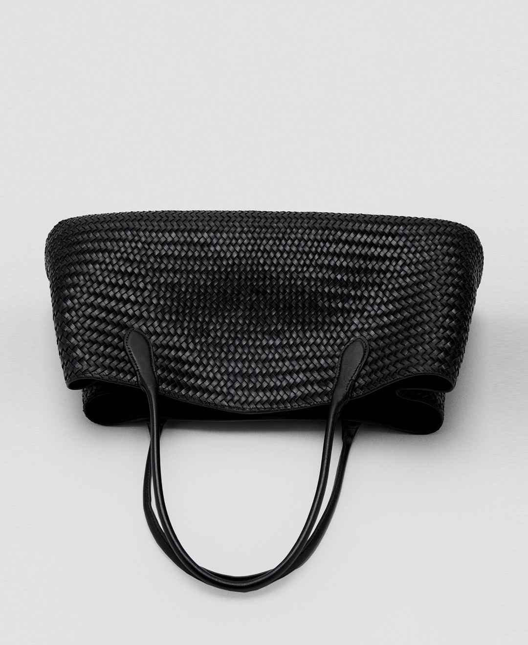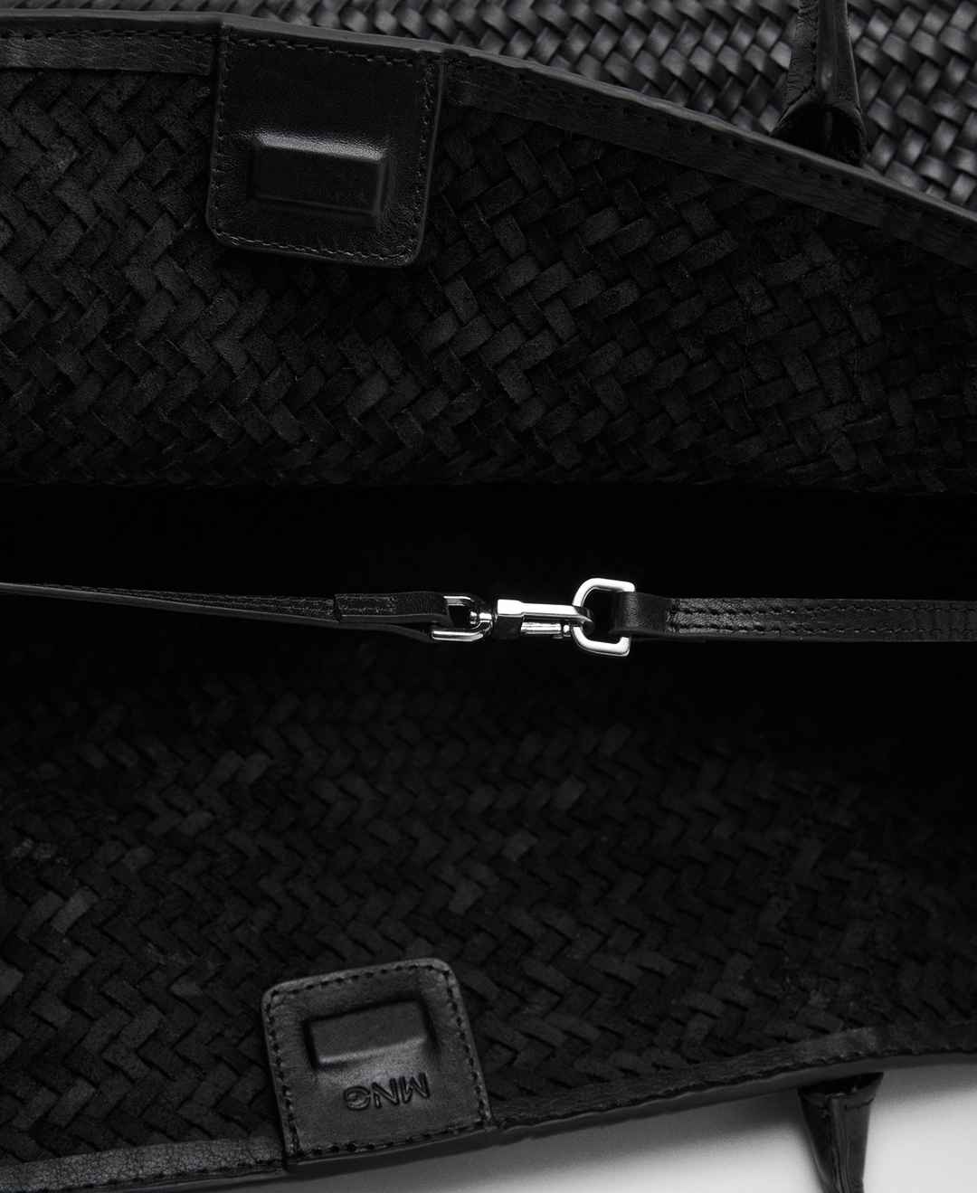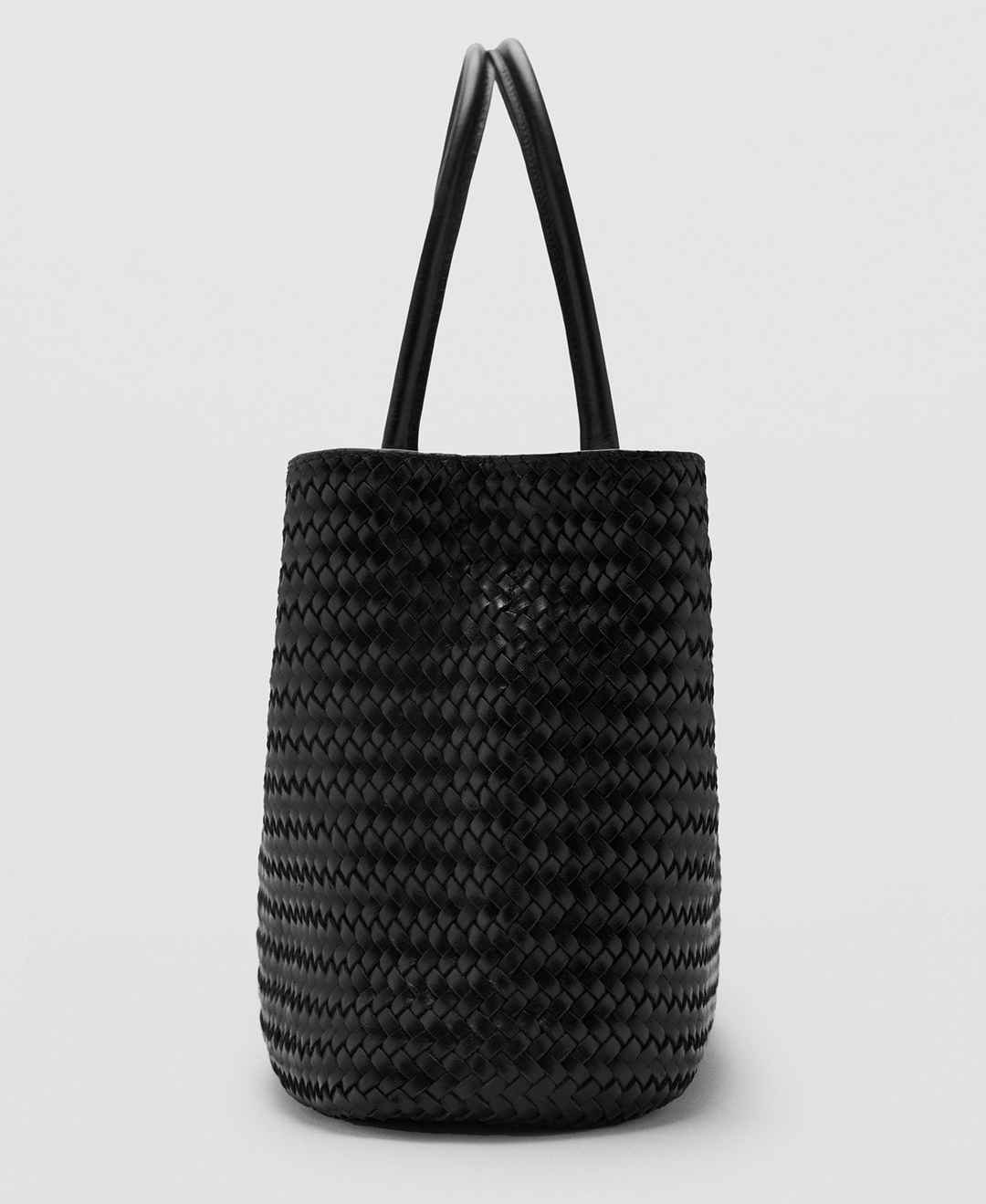 Mango Women's Large Braided Leather Shoulder Bag - Black