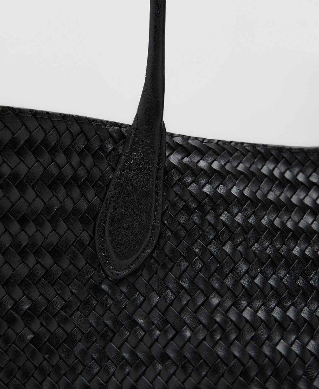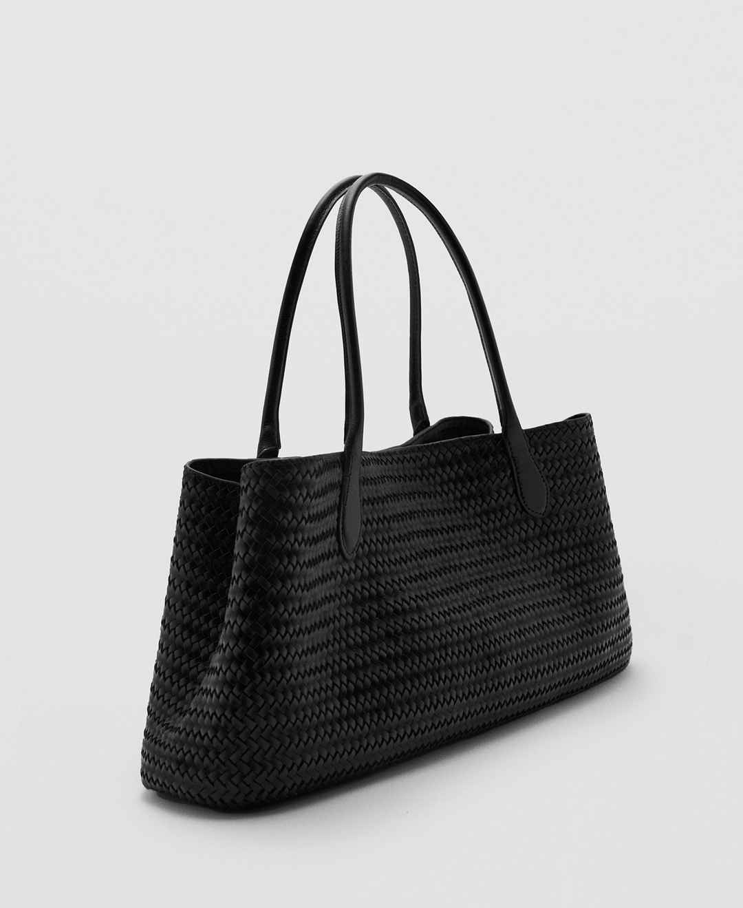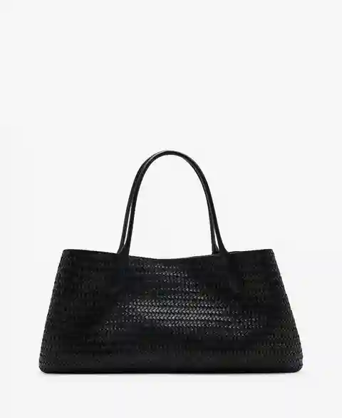 Mango Women's Large Braided Leather Shoulder Bag - Black