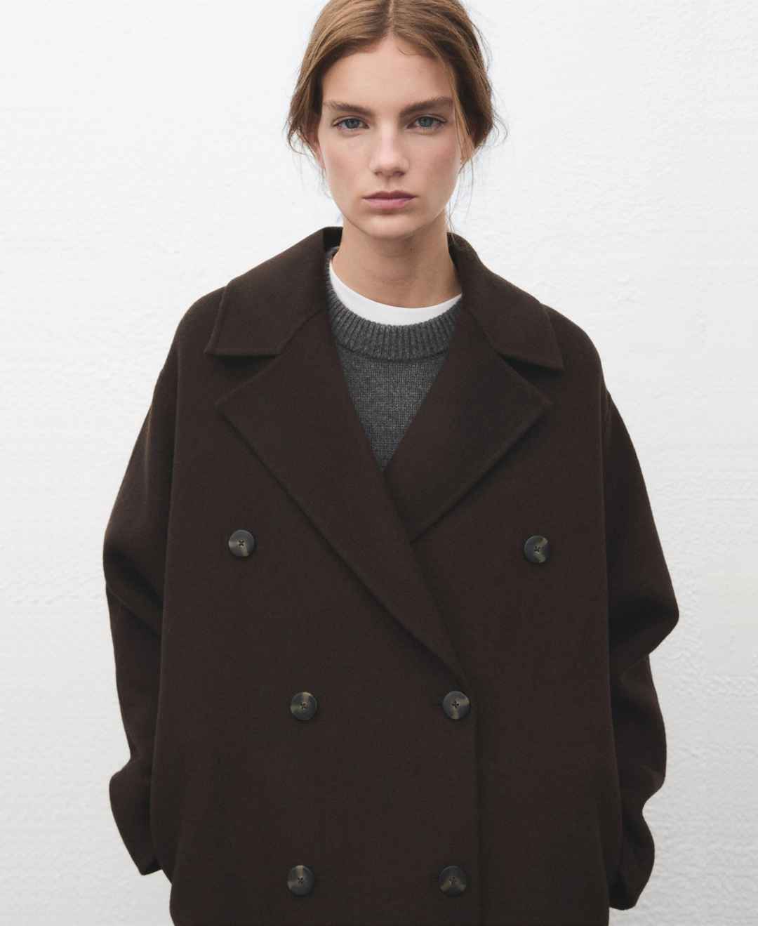 Mango Women's Handmade Oversized Wool Coat - Chocolate
