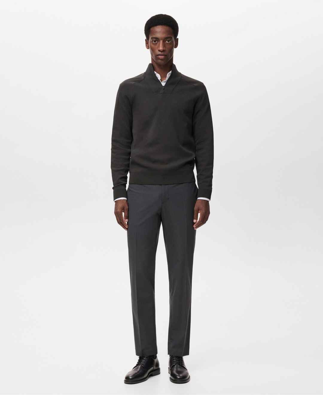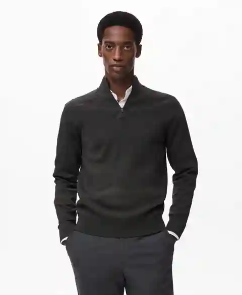 Comfort takes form in the Breathable Zip-Neck Sweater from Mango. Made from viscose-blend fabric.