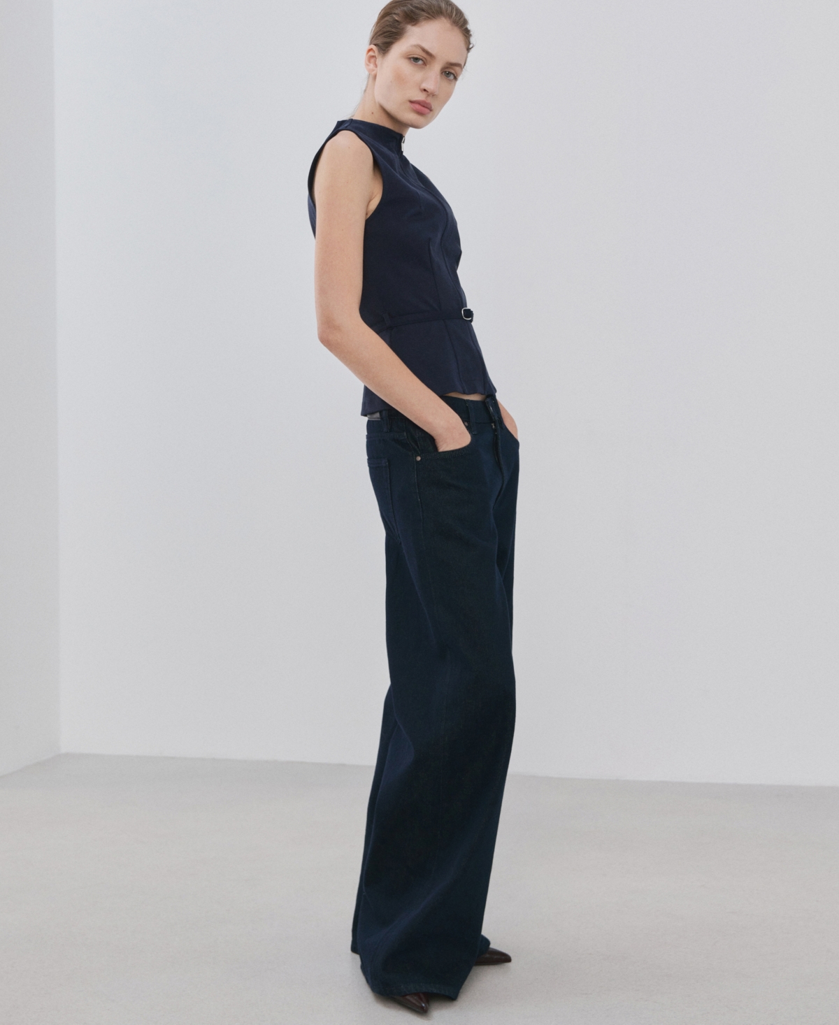 Show edgy layering style with Zipper Fitted Waistcoat from Mango. Made from structured fabric, the waistcoat features straight cut, round neck, sleeveless silhouette, zip closure and belt detail at waist. With a history spanning four decades, Mango is one of Europe's leading fashion brands. From Bar...more