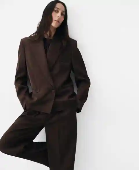 Mango Women's Double-Breasted Suit Jacket - Chocolate