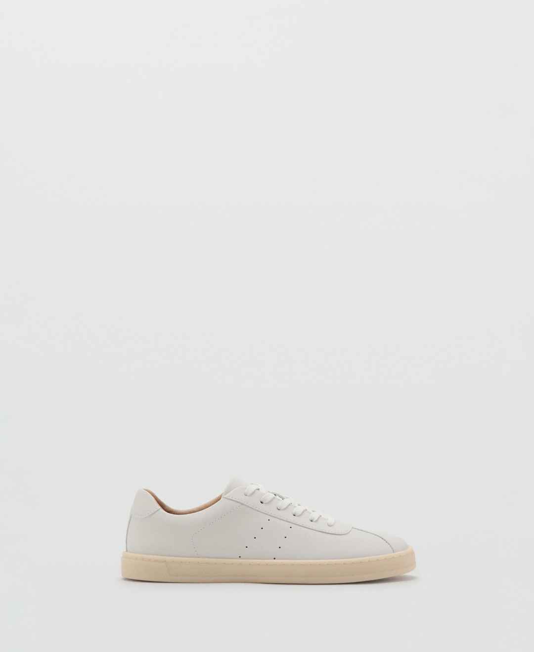 Complete casual rotations with the Leather Panel Sneaker from Mango. Crafted from bovine leather, this sneaker features baseball-inspired profile, round toe, contrast inner lining, lace-up closure, and rubber sole.
