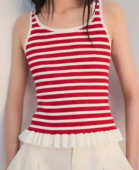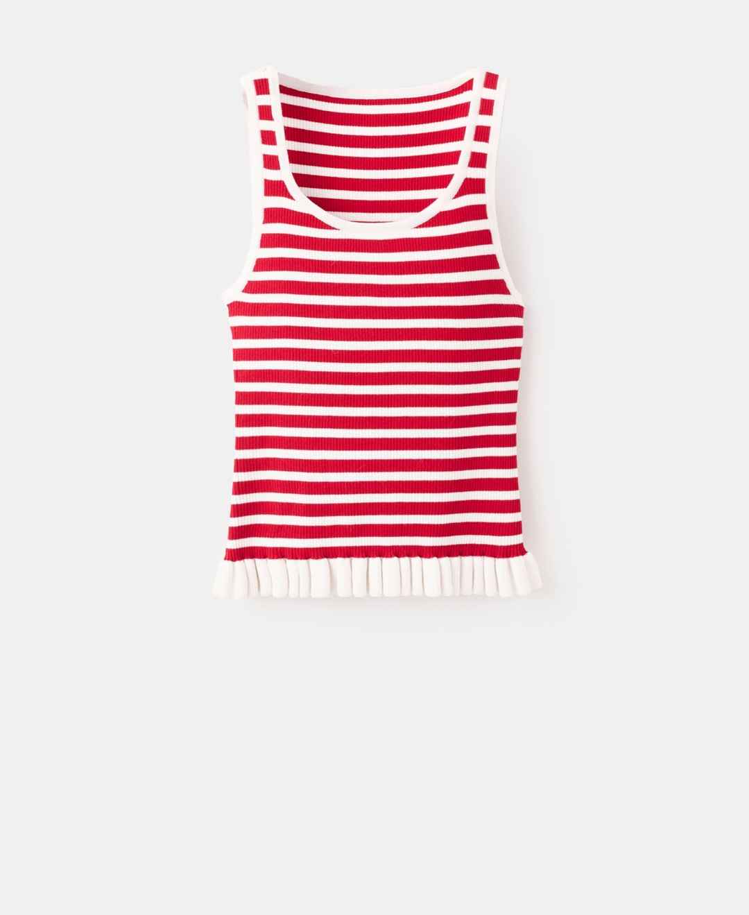 Introducing texture-led layering, the Pleat Detailed Top from Mango sharpens warm-weather styling. Crafted from knitted fabric, the top features straight silhouette, striped print, sleeveless cut, thin straps. With a history spanning four decades, Mango is one of Europe's leading fashion brands. Fro...more