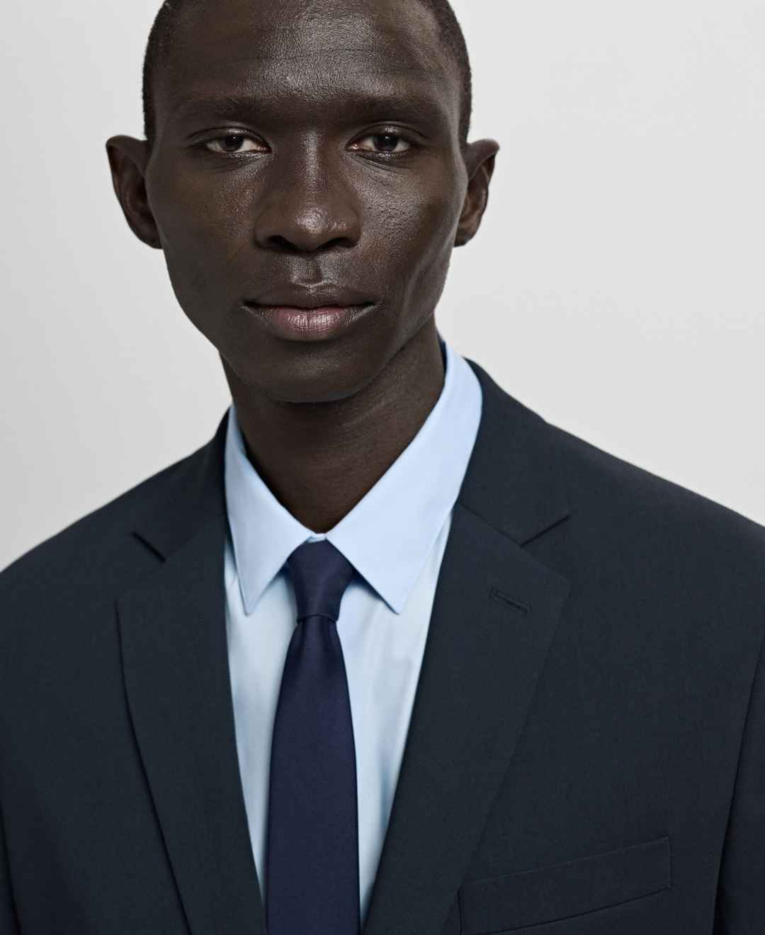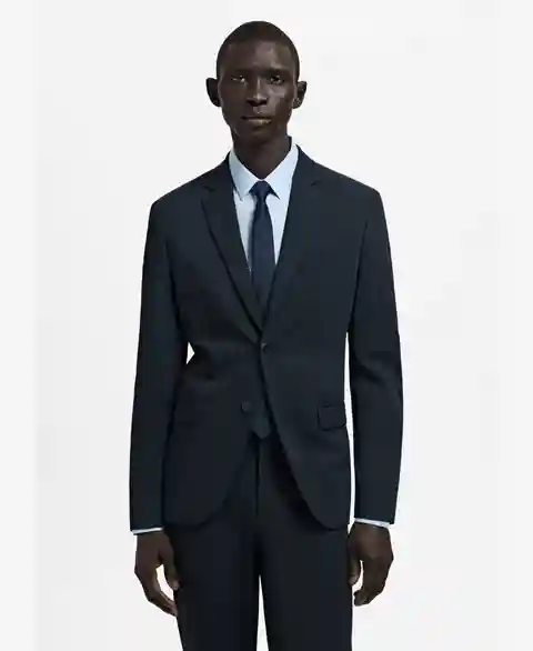 Precise tailoring marks the Super Slim-Fit Suit Jacket in Stretch Fabric from Mango. Made from stretch fabric with full lining, this jacket features a super-slim silhouette with buttoned strap cuffs, long buttoned sleeves, side-slit hem and interior pocket.