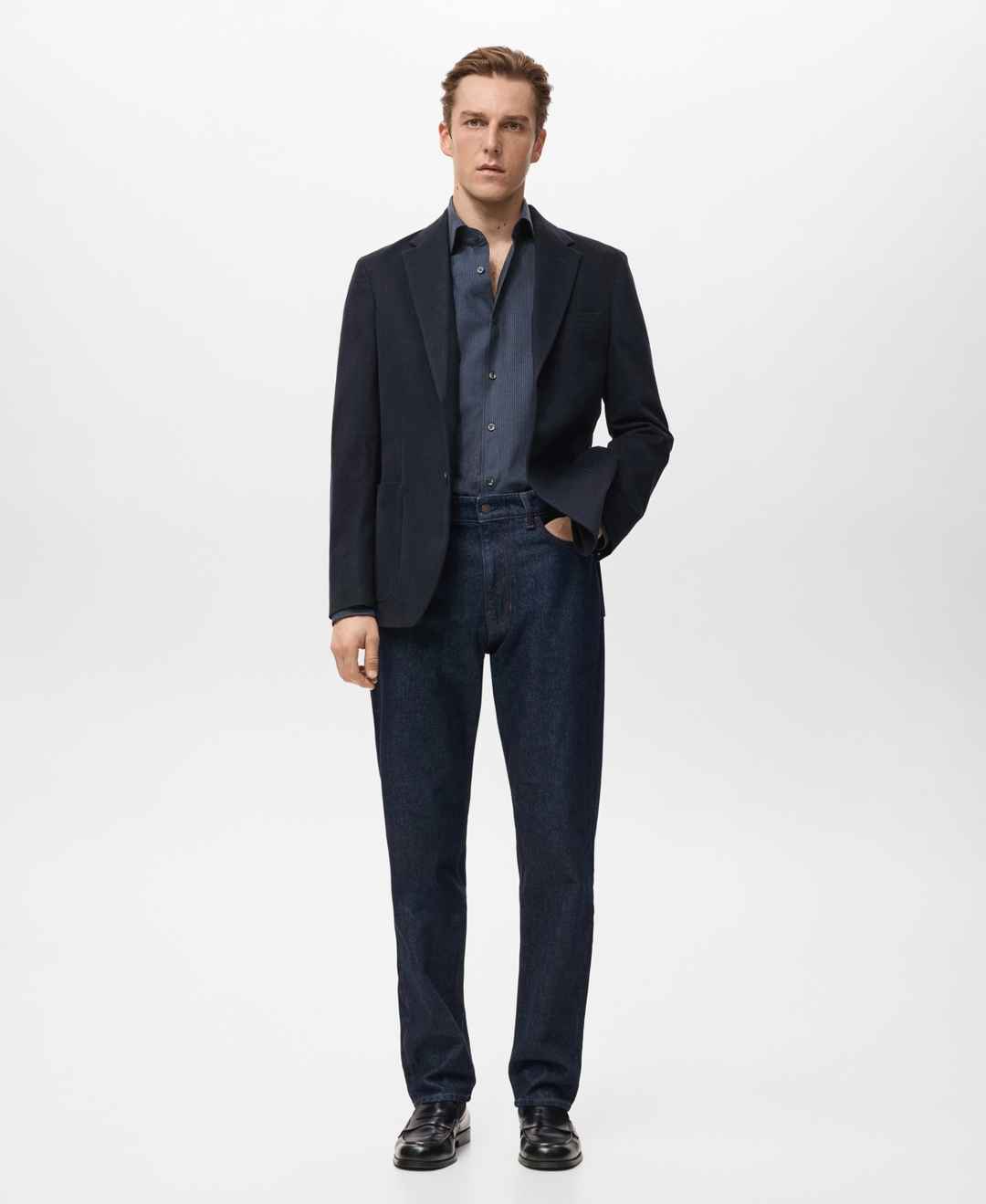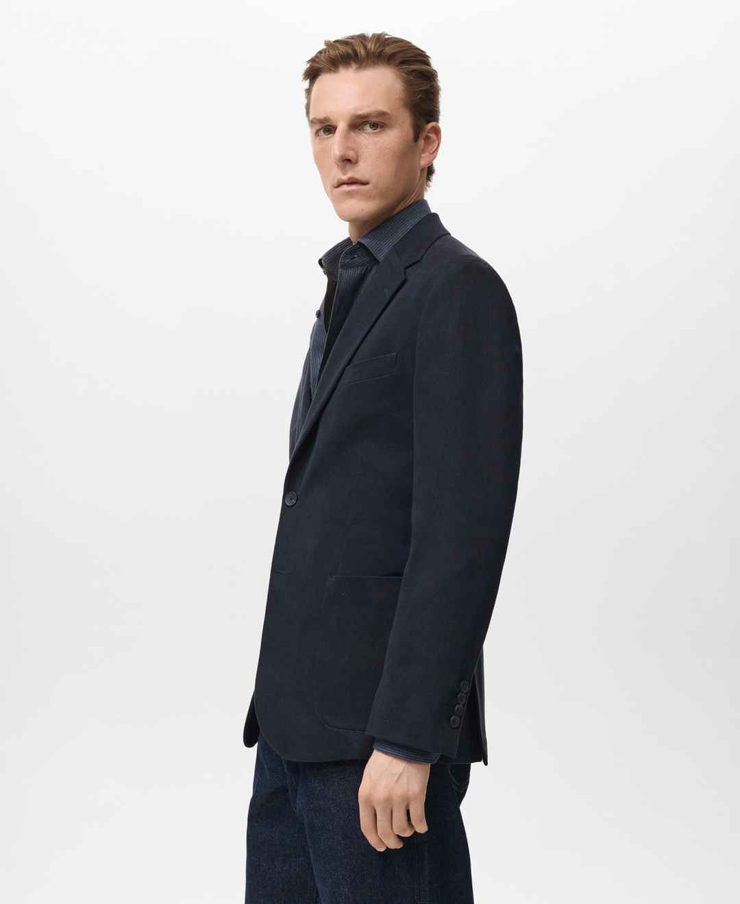 This Slim Fit Cotton Blazer from Mango sharpens modern tailoring through a streamlined silhouette. Made from cotton fabric, this blazer features notch lapels with buttonhole, chest welt pocket, front patch pockets, interior pocket, long sleeves with buttoned strip cuffs and front button closure.