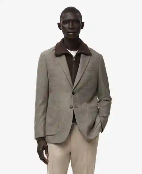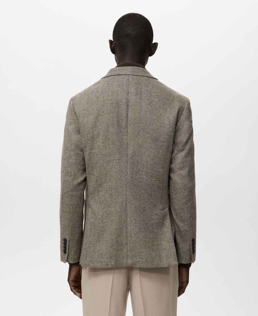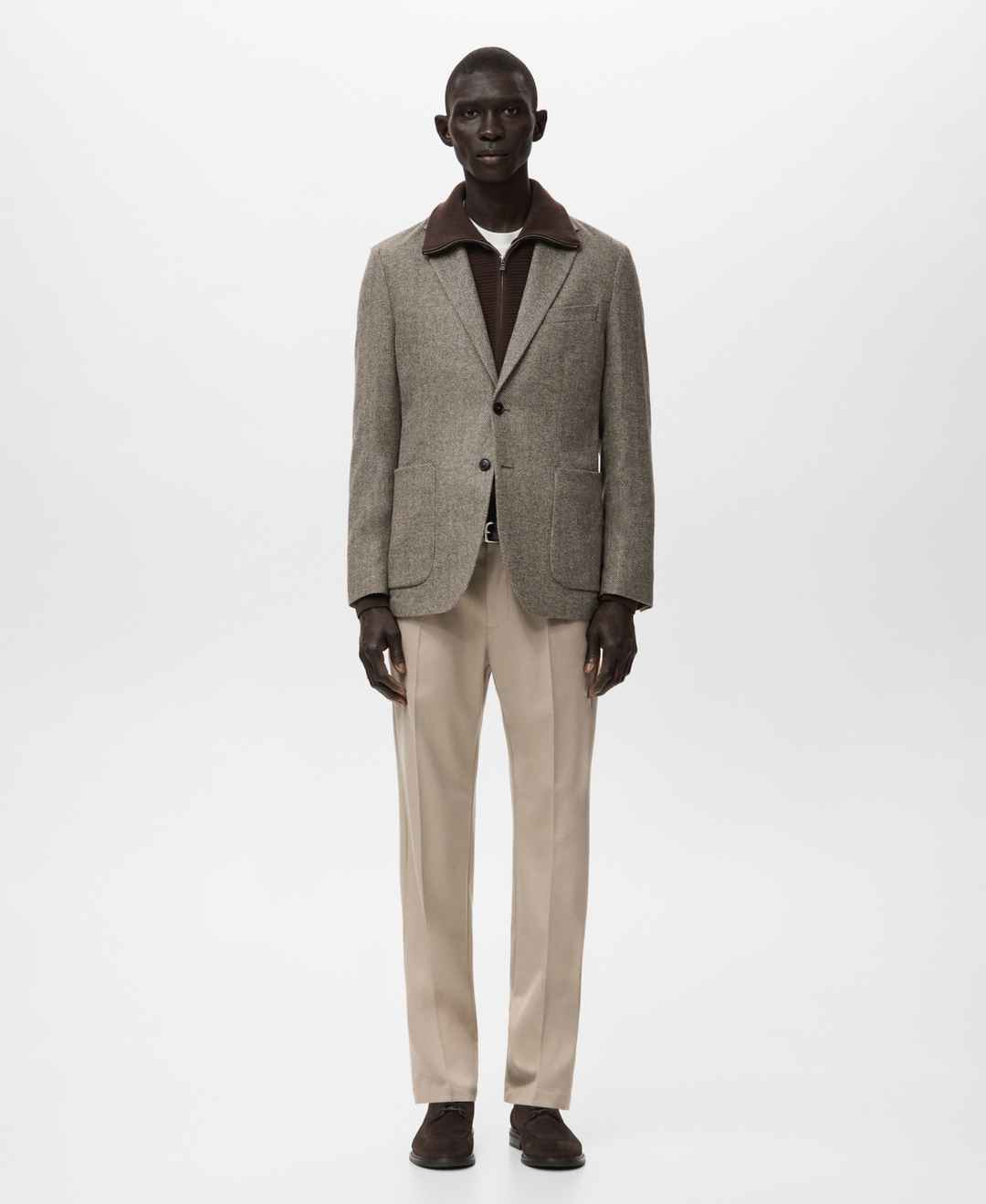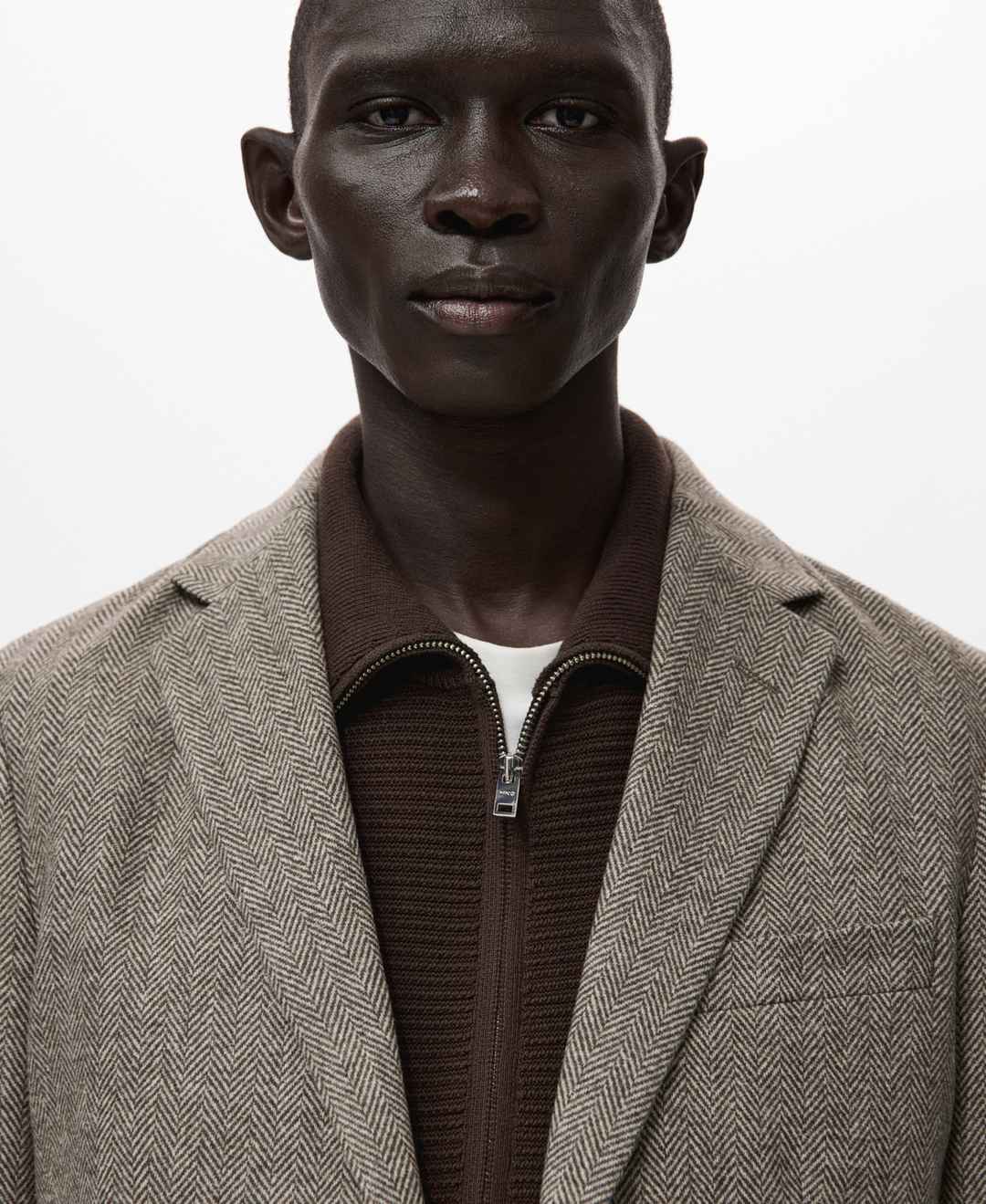 Define modern tailoring with the Slim Fit Wool Blend Blazer from Mango. Crafted from wool blend fabric, this blazer features notch lapels with buttonhole, herringbone pattern, chest welt pocket, front patch pockets, interior pocket, long sleeves with buttoned cuffs, and button closure.