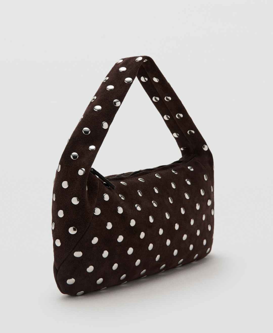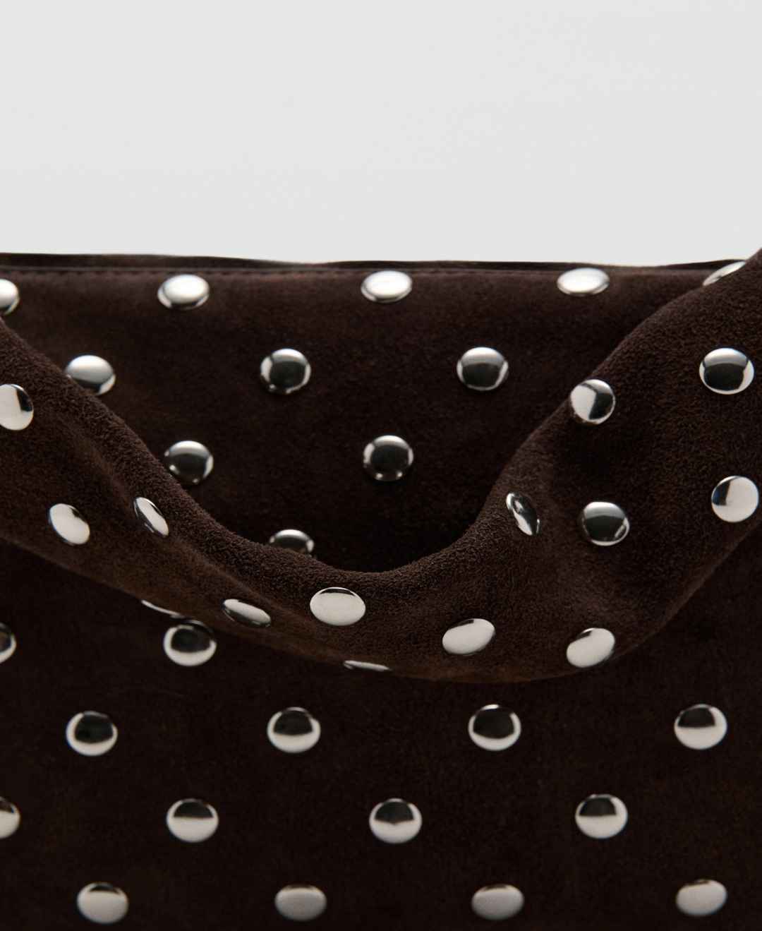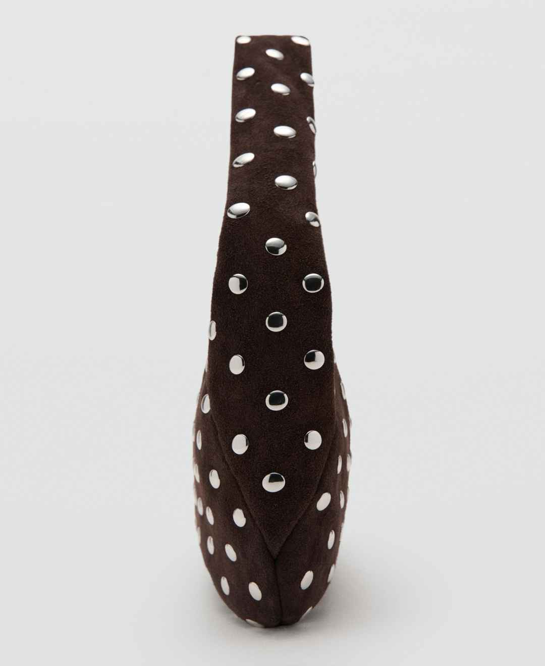 Mango Women's Suede Studded Shoulder Bag - Dark Brown