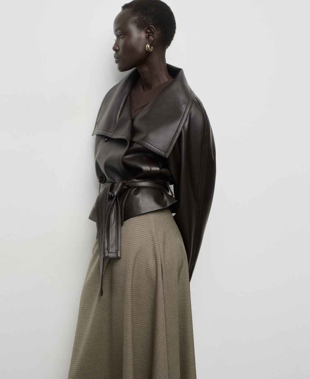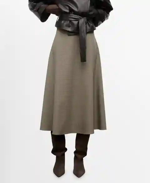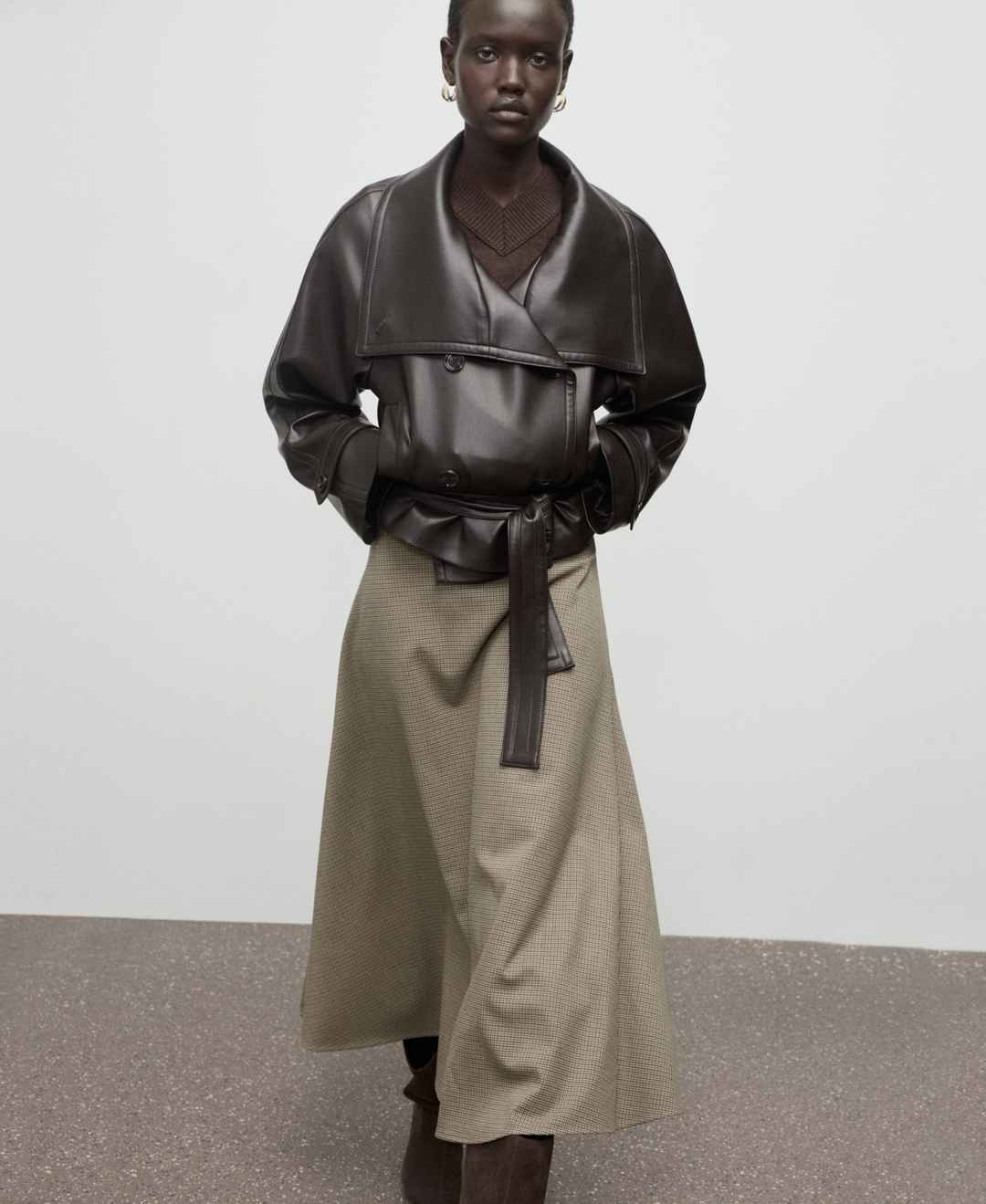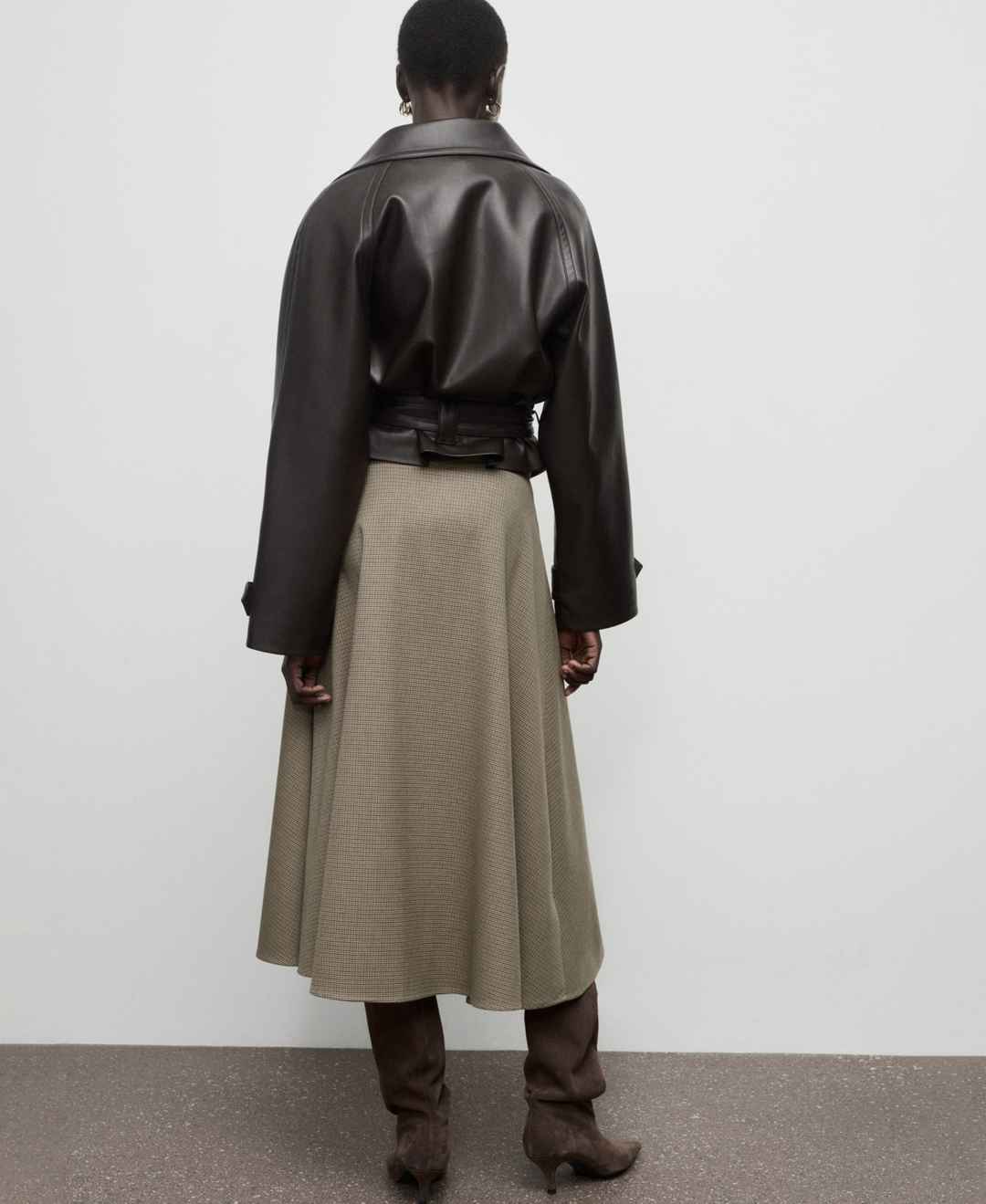 Classic patterns meet refined tailoring in the Houndstooth Wool-Blend Skirt from Mango.