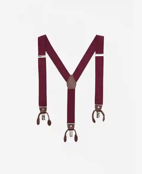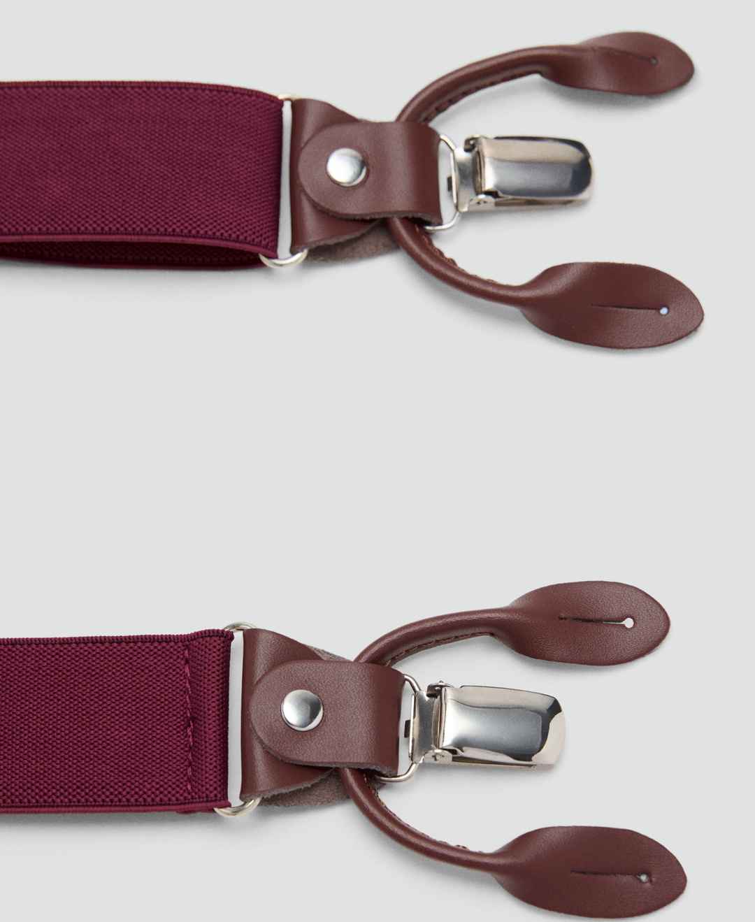 Mango Men's Leather Details Adjustable Elastic Suspenders - Burgundy