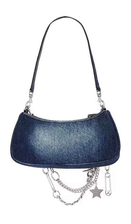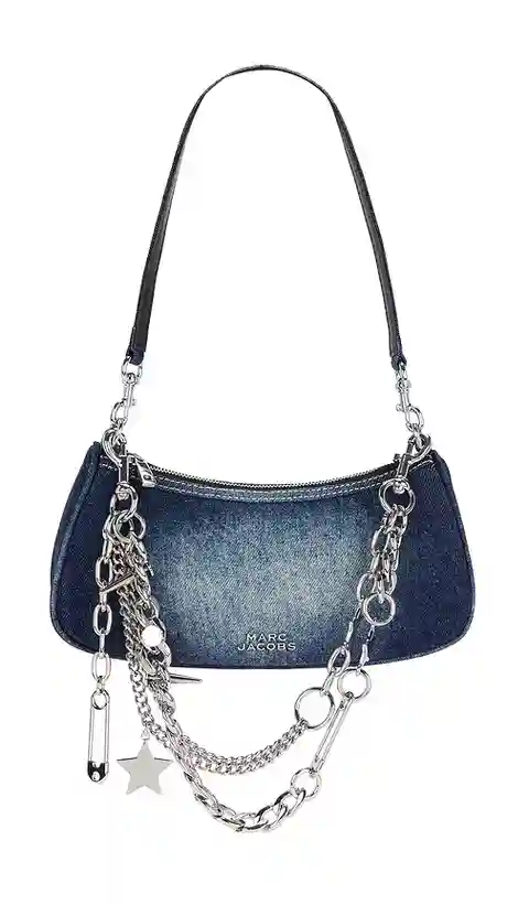 Marc Jacobs The Shoulder Bag in Blue. Marc Jacobs The Shoulder Bag in Blue. Denim exterior with canvas lining. Top zip closure. One main compartment. Removable straps: Silver-tone metal chain with spike and charm details, Denim strap. Personalize with additional charms; Additional charms not include...more