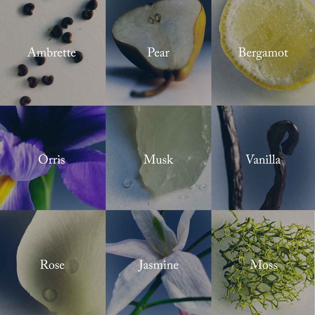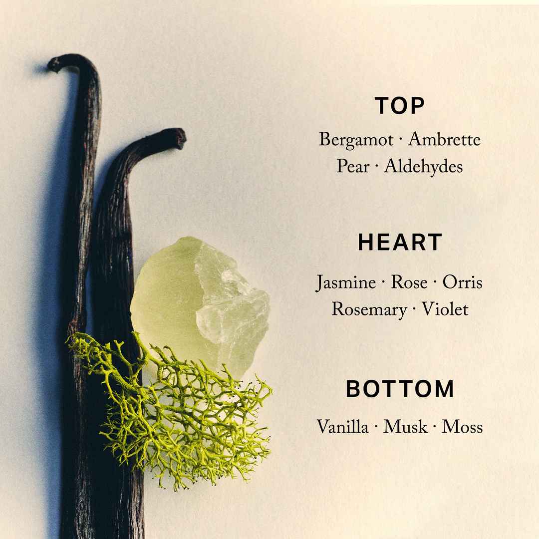 A rich, nuanced scent that evolves throughout the day. Soft, clean notes open, followed by a subtle floral center before settling into a base of musk, vanilla, and moss for a warm, second-skin finish. See Full Detailsmore