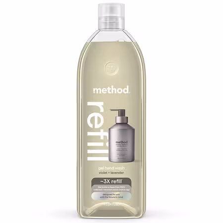 Just another classic fill-good story. In this tale, method gel hand wash meets its ultimate sidekick: the 28oz violet + lavender refill. With notes of lavender + dewy violet leaves, this innovative companion fills your bottle up to 2.8 times. Made from 100% collected and recycled plastic (minus cap)...more
