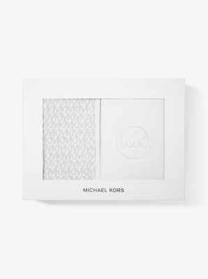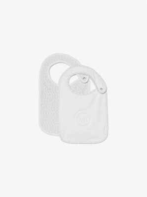 Its never too early for your little one to enjoy great style. This 2-pack of baby bibs is made from soft cotton and each features a gleaming gold-tone snap for easy on and off. Our "MK" print emboldens one, while our embossed initial logo finishes the other.