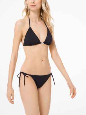 A curb-link chain lends glamorous appeal to this triangle bikini top, while removable cups and sleek tie fastenings provide a seamless fit. Wear it with the matching bottoms on vacation.