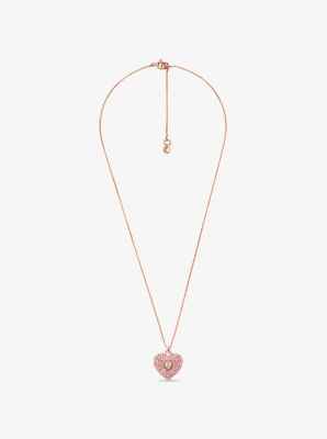 14K Rose-Gold Plated Sterling Silver Pav Heart Necklace