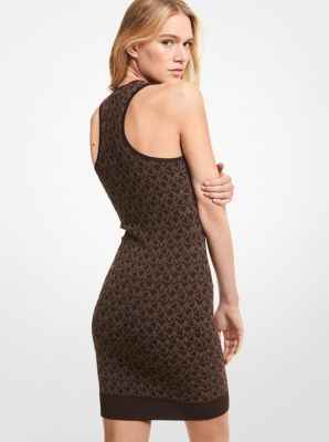 Our iconic MK initials lend a heritage-chic mood to this jacquard dress. It has a slim figure-flattering fit and solid ribbed trim along the mini hem. Team yours with the seasons fashion-forward footwear for added impact.