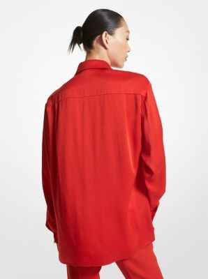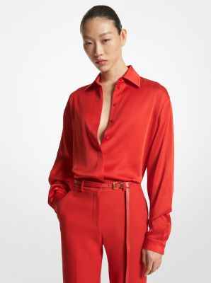 In lustrous charmeuse this Italian-made shirt strikes the perfect balance between menswear inspiration and modern femininity. Its cut in a slightly relaxed silhouette detailed with a pointed collar and a partially concealed button placket. Leave a few buttons undone when styling it with the seasons ...more