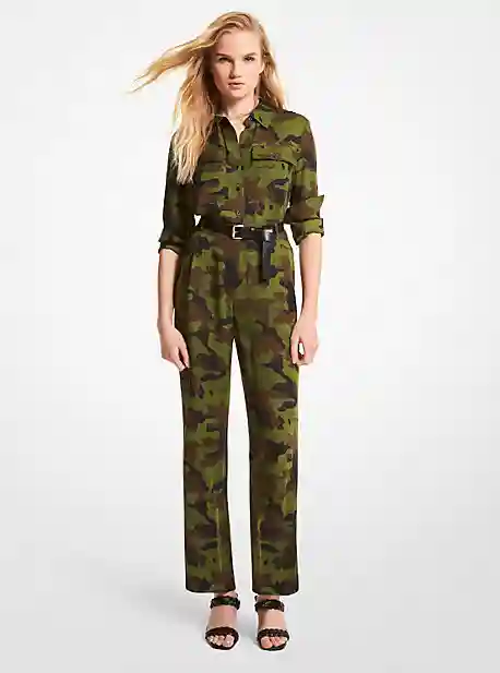 Embrace the seasons modern military mood with this striking jumpsuit. Taking cues from classic shirting with its buttoned front and flap pockets its cut from lustrous silk georgette in a flattering straight leg silhouette. We love how effortless it is to style: just add sneakers or pumps depending o...more