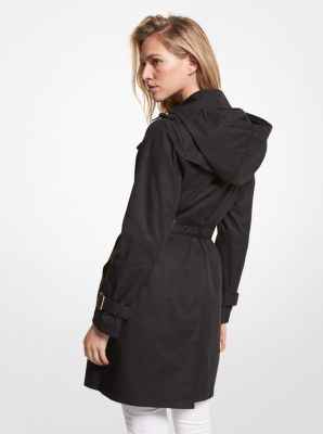 A modern twist on an outerwear staple this trench coat features a waist-cinching belt with woven KORS lettering. It has all the military-inspired details that make it a classic including a double-breasted front epaulettes and buckled cuffs. Adjust the drawstring hood to keep the wind at bay.