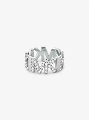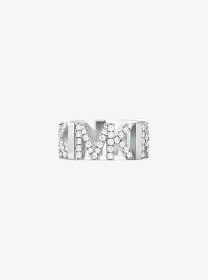 Made from platinum-plated brass this standout ring is set with glistening pav stones that accentuate the MK cutouts along the band. Wear it alone or stack it with bands in plain gold.