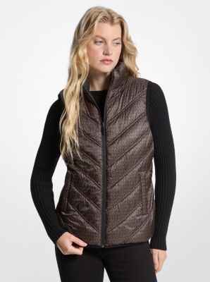 Chevron Quilted Logo Print and Nylon Packable Vest