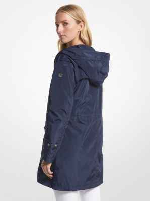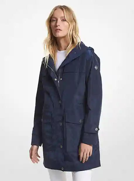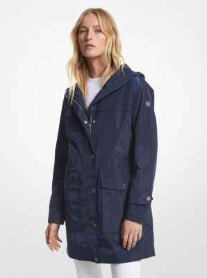 A functional yet stylish solution on rainy days this raincoat is cut from a water-resistant fabric and fitted with a drawstring hood to keep out the elements. Slip your phone cards and keys into the spacious flap pockets.