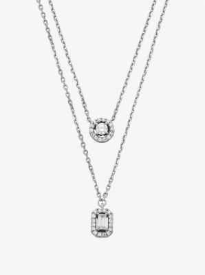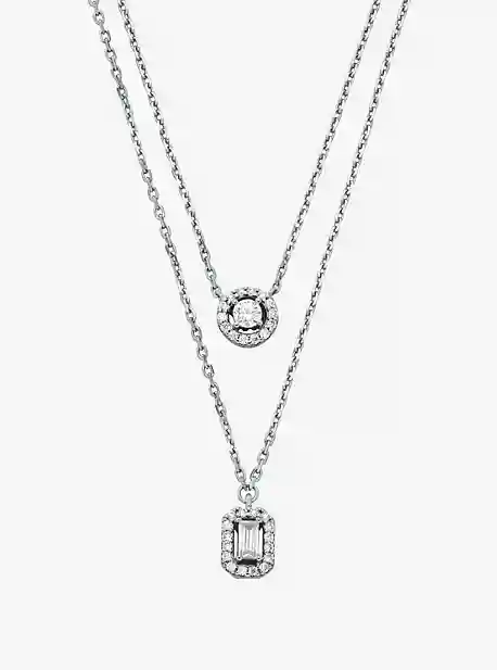 This elegant necklace is just what you need when the occasion calls for a touch of sparkle. Suspended by delicate silver-tone chains, the two glistening cubic zirconia stones are surrounded by pav halos for a dazzling effect. Add it to every ensemble from cocktail dresses to crisp button-up shirts.