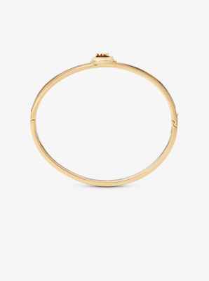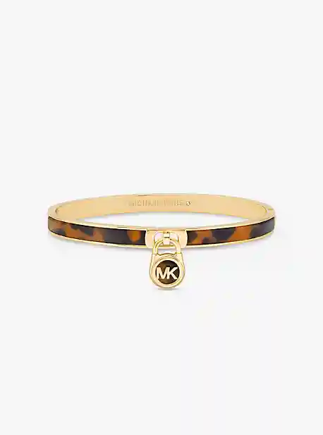 Featuring a charm inspired by the hardware on our beloved Hamilton bag, this gold-tone bangle bracelet is finished with tortoiseshell acetate accents. A hinged button-closure fastening makes it easy to slip on and off.