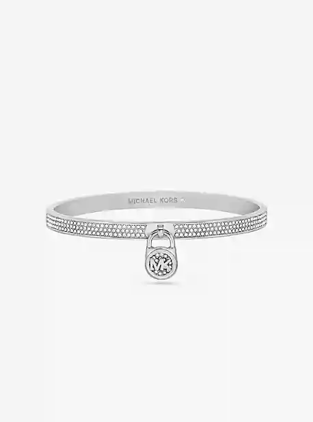 Inspired by the hardware on our beloved Hamilton handbag, this glittering bangle bracelet is dusted with three rows of pav and finished with a signature padlock charm. A hinged fastening makes it easy to slip on and off.