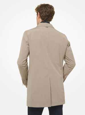 Made from a water-resistant cotton blend this coat combines form and function. A quilted bib can be attached for added warmth on brisk days while polished rounded buttons lend a pragmatic finish. Layer it over everything from sharply tailored separates to a T-shirt on the weekend.