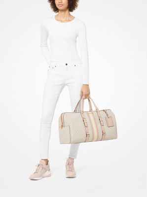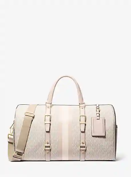 Make a chic escape with our Bedford Travel weekender bag. Designed for long-haul flights and train rides, the duffel-shaped carryall is crafted in our signature logo print and accented with center racing stripes and buckled leather trim. The inside pockets keep smaller items like your headphones and...more