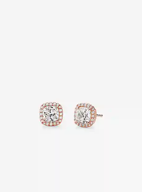 Perfect for daily wear, these stud earrings channel a refined glamour. Available in 14K rose gold and rhodium platings, this elegant pair features a cubic zirconia center thats surrounded by pav accents. Wear yours with everything from office-ready separates to evening ensembles.