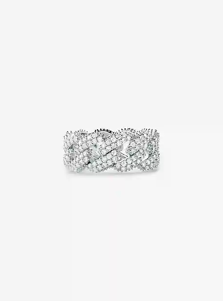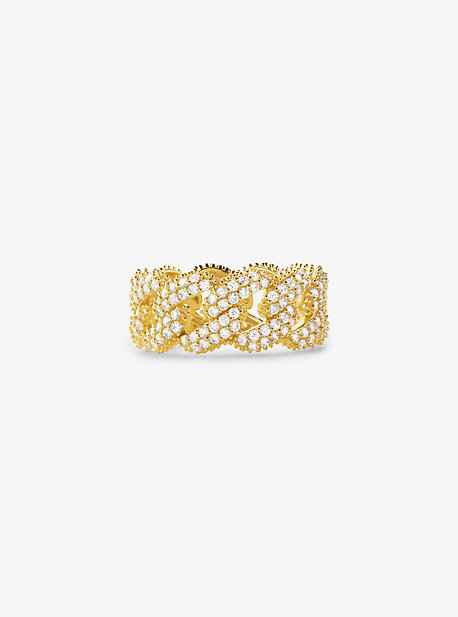 Crafted from sterling silver and available in two elevated platings this curb-link ring is punctuated with cubic zirconia pav accents for a luxe sensibility. Layer it with other styles or wear it alone for a more understated look.