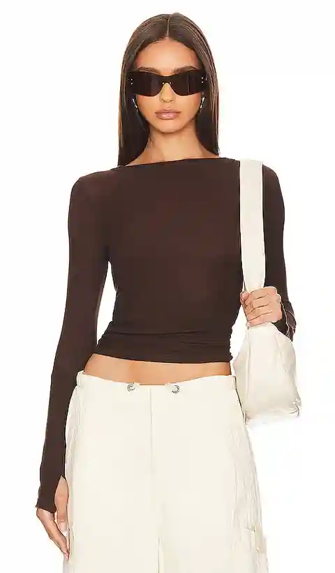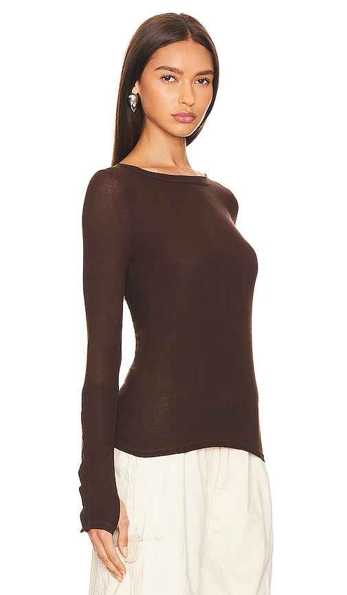 Michael Lauren Sorento Snap Cuff Top in Chocolate. - size L (also in M, XL) Michael Lauren Sorento Snap Cuff Top in Chocolate. - size L (also in M, XL) 95% siro viscose 5% spandex. Made in USA. Machine wash. Thumbhole cut-out. Snap button cuffs. Lightweight ribbed jersey fabric. MLAU-WS979. ML-6662-...more