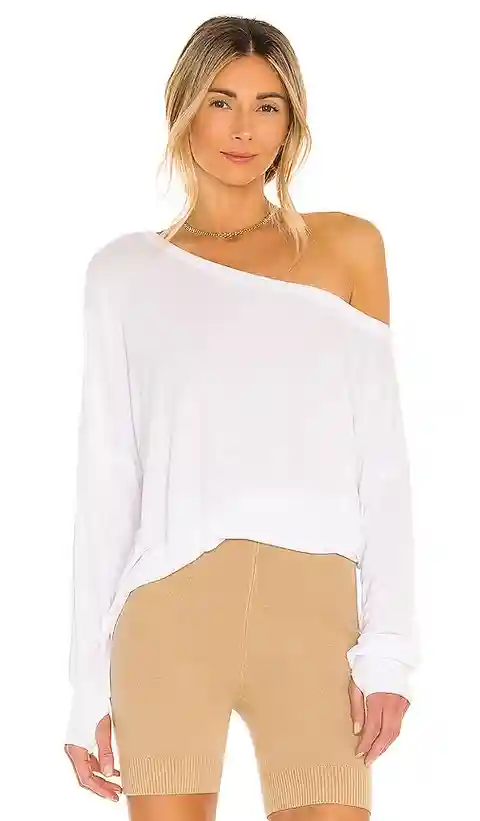 Michael Lauren Kristopher Open Shoulder Top in White. - size M (also in L, S, XL, XS, XXL) Michael Lauren Kristopher Open Shoulder Top in White. - size M (also in L, S, XL, XS, XXL) 95% siro viscose 5% spandex . Machine wash cold. Off shoulder styling. Ribbed ruched detail throughout. Made in USA. M...more