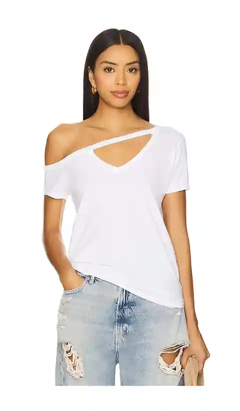 Home Michael Lauren Michael Lauren Zire Short Sleeve Asymmetrical Cold Shoulder Tee in White. - size S (also in XS)