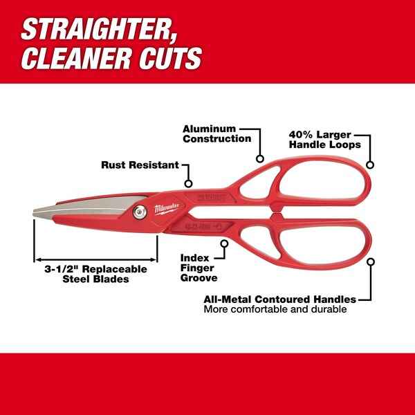 Tinners Snip, Blade Material Aluminum, Cutting Capacity 24 ga (Cold Rolled Steel), 26 ga (Stainless Steel), Cutting Direction Left, Right, Straight, Cutting Edge Type Non-Serrated, Cutting Length 3 1/2 in