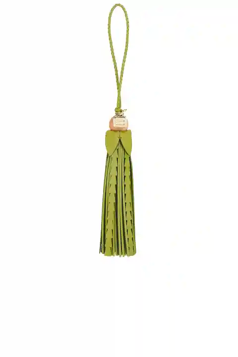 Miu Miu Bag Charm in Green Leather bag charm with braided loop and wooden bead. Made in Italy. Please note, bag is not included. Measures approx 11 in length. MIUF-WA165. 5TL542. About the designer: Established in 1992 by Miuccia Prada, Miu Miu reflects fashion forward, light-hearted, and provocativ...more