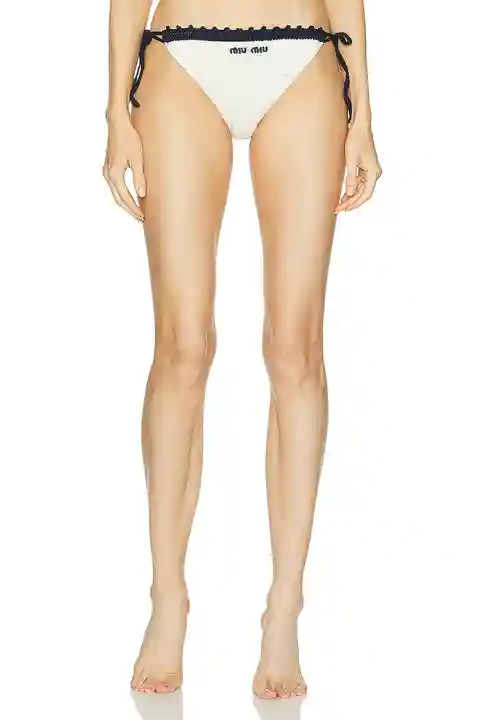 Miu Miu Cotton Crochet Bottom in White Self: 97% cotton 3% polyamide Lining: 100% cotton. Made in Italy. Dry clean only. Item not sold as a set. MIUF-WX1. MMP232. About the designer: Established in 1992 by Miuccia Prada, Miu Miu reflects fashion forward, light-hearted, and provocative women. The lan...more