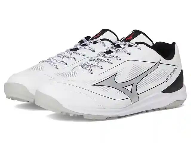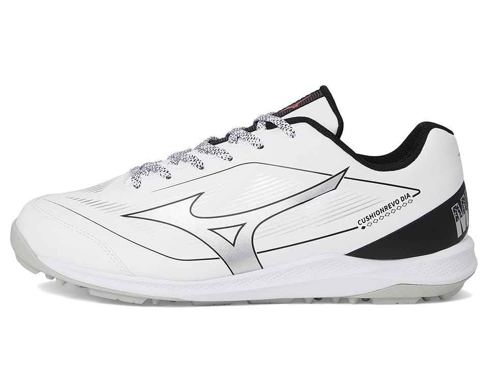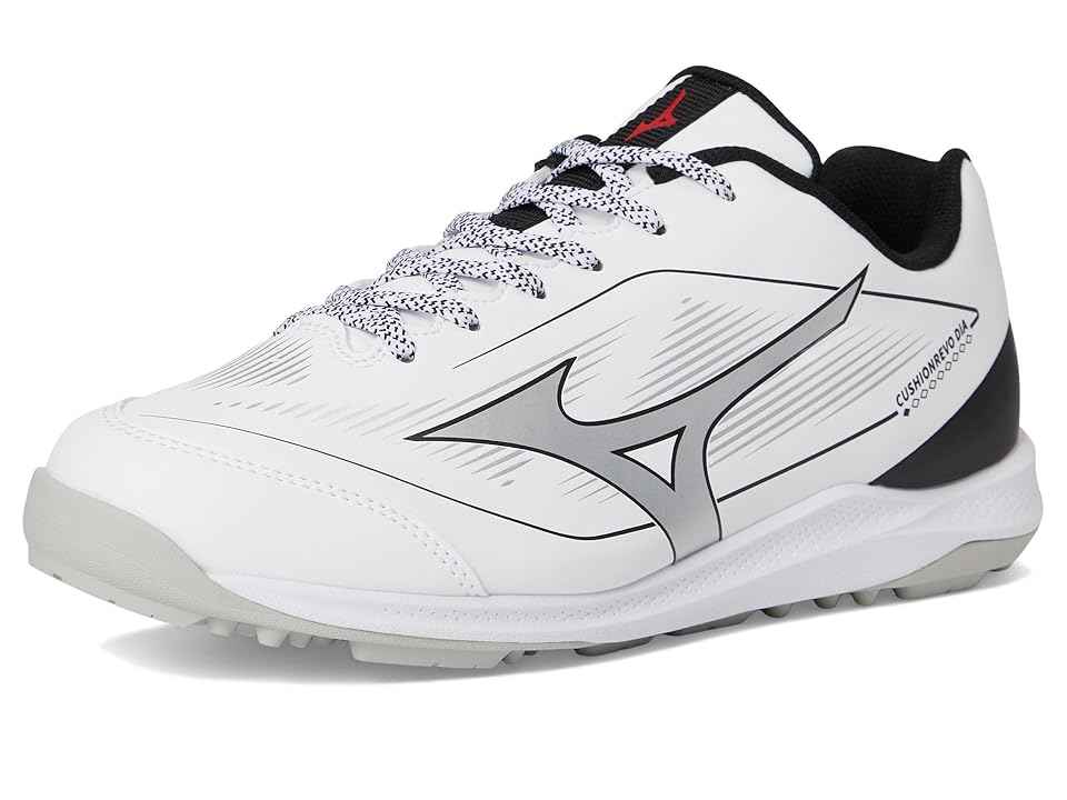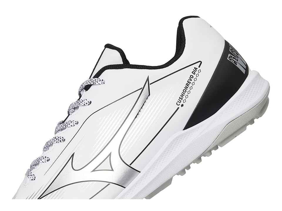 Mizuno Cushionrevo Diamond Turf - Cross Training Shoes : White/Black : The Mizuno Cushionrevo Diamond Turf is designed for versatility and comfort, featuring an all-weather synthetic upper for durability in any condition. A reinforced toe adds structural support, while the lightweight, low-top desig...more