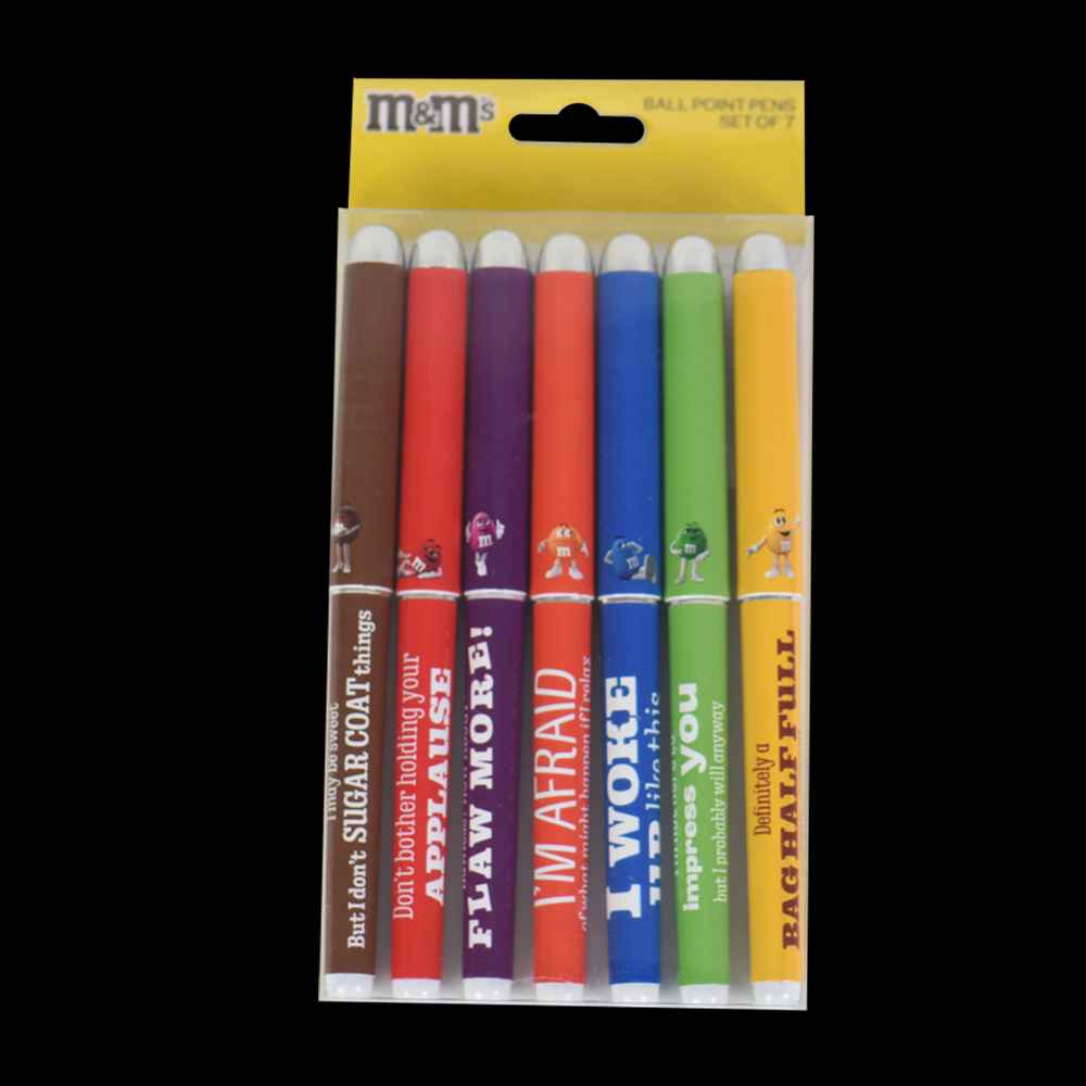 Add a little pizazz to your pen collection. This colorful set of ballpoint pens includes all seven M&MS characters with a fun quote from each on the pen. Pick the personality that suits your writing task.