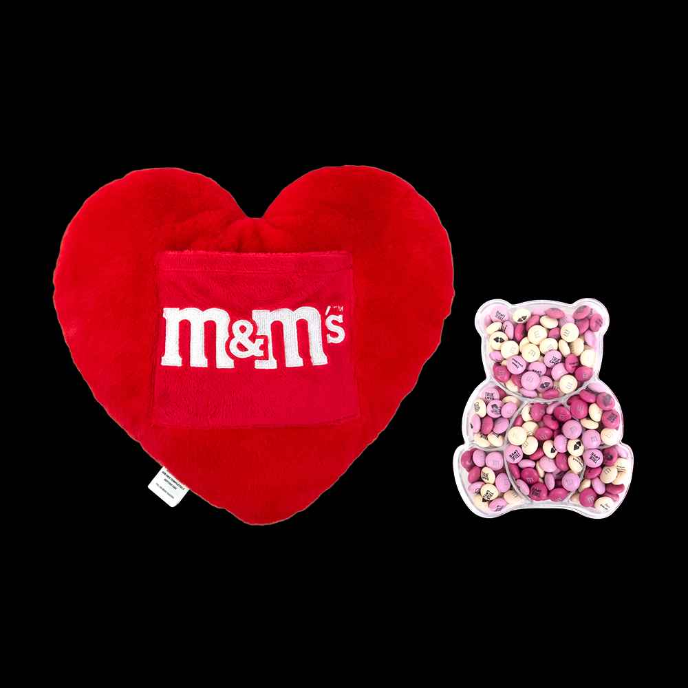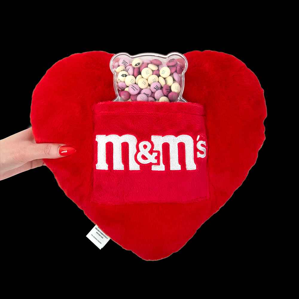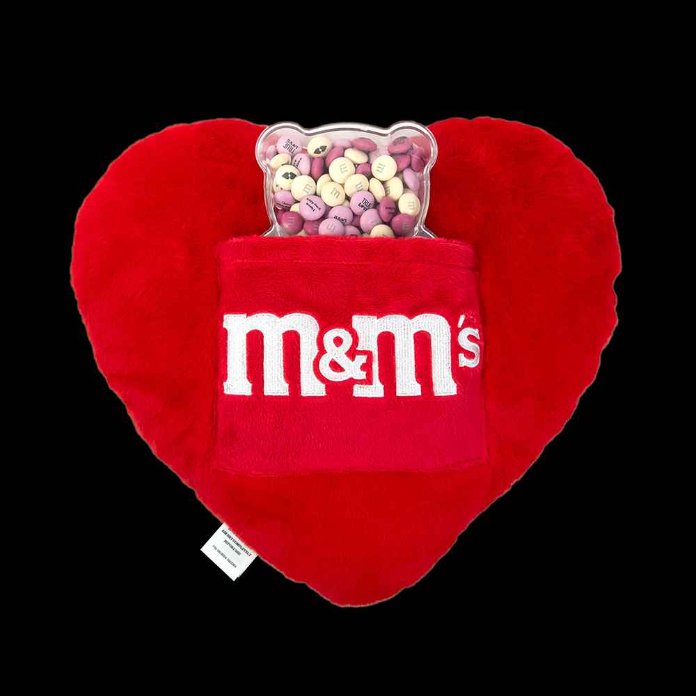Our loveable teddy bear is filled with your sweet expressions of love and arrives with a keepsake, cozy heart pillow. The transparent bear gift box shows off your customized M&MS chocolate candies inside. A unique gift for Valentines Day, date night, birthdays, or anniversaries.