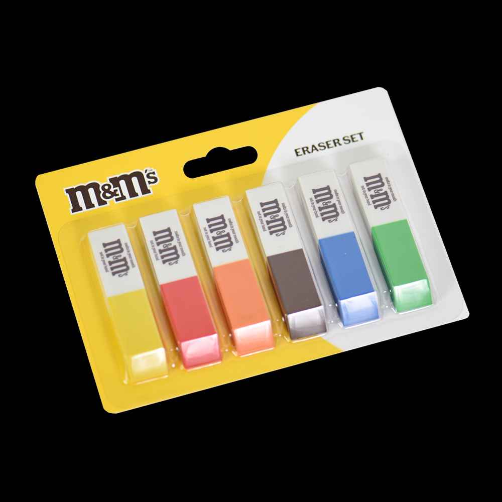 Even useful tools can be fun! Add some color to your pencil case or desk drawer with our 6-pack set of erasers. Part of our Heritage Collection, each of the six erasers is a bright, solid color with a white plastic grip that is printed with our original M&MS logo and famous slogan, melts in your mou...more