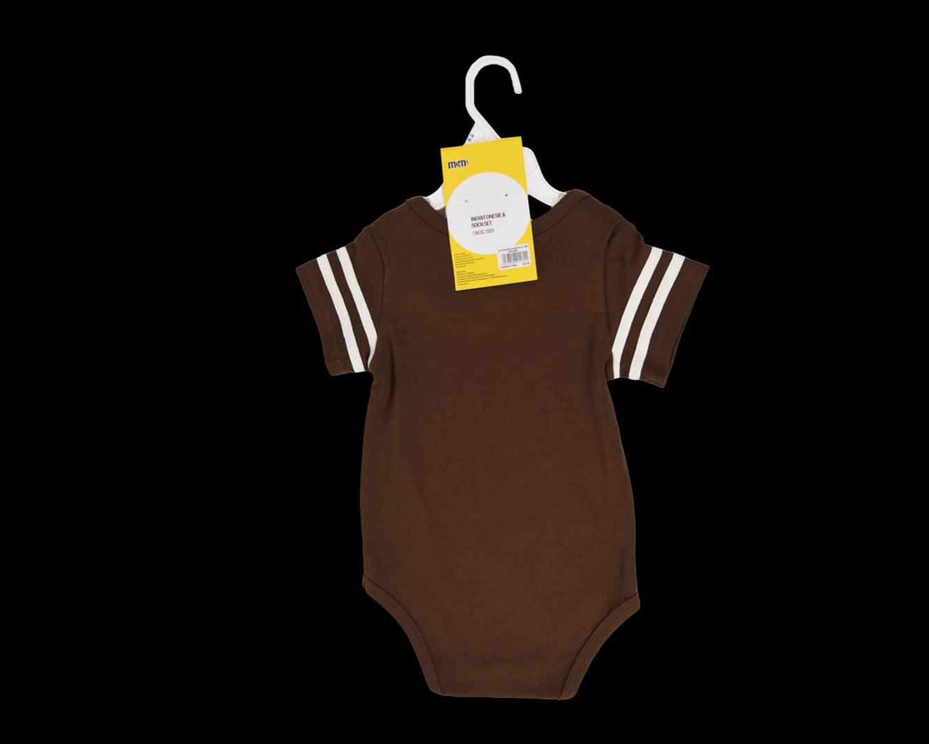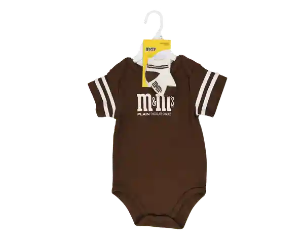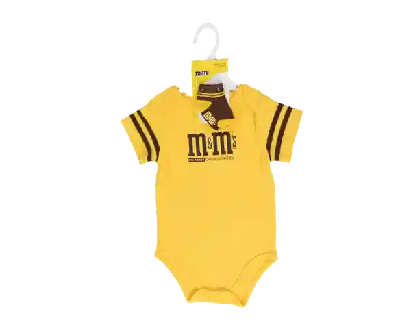 A sweet way to share your love of M&MS. Reminiscent of our classic candy package, this infant onesie and socks set has a vintage vibe. Choose between Milk Chocolate or Peanut. The onesie has ringer style stripes around the sleeves and is paired with socks to match.