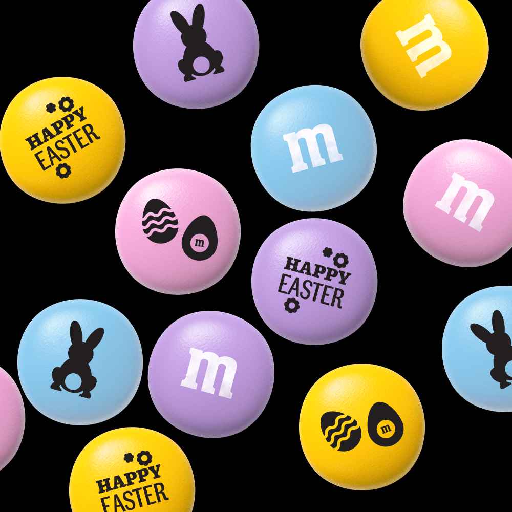 Spring into sweet fun with our Easter M&MS chocolate candies blend. Pastel M&MS chocolate candies are printed with Easter eggs, an Easter bunny, and a Happy Easter message. This festive Easter chocolate is ready to adorn sweets buffets, create party favors, and fill baskets!